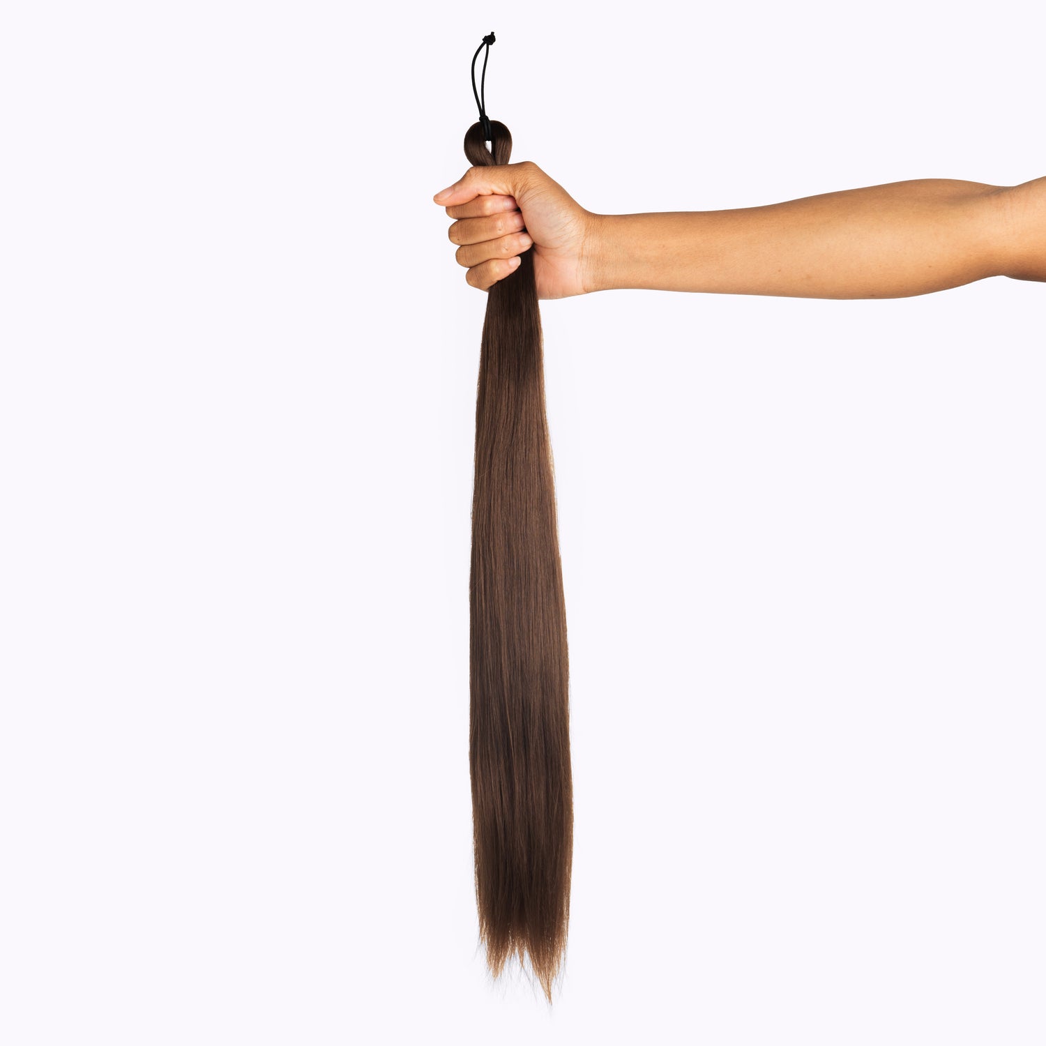 The collagen is then hydrolysed, breaking it down into smaller amino acids that make the fibre stronger, more flexible and easier to style. Unlike many synthetic options made from plastic, collagen proteins are naturally more heat-resistant, making them ideal for safe styling up to 180°C. Finally, the fibres are dyed and set on rods to achieve the desired colours and textures, ensuring consistency across every pack of hair.